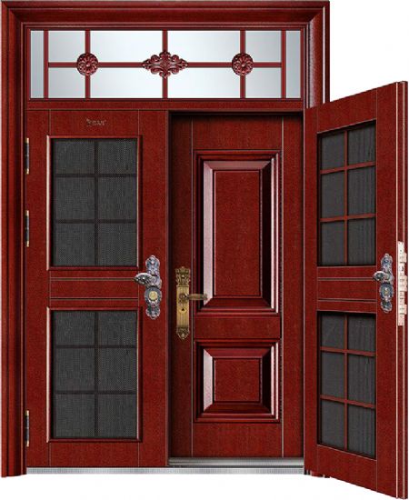 甲级复合门-7062-(皮纹板)5D红木